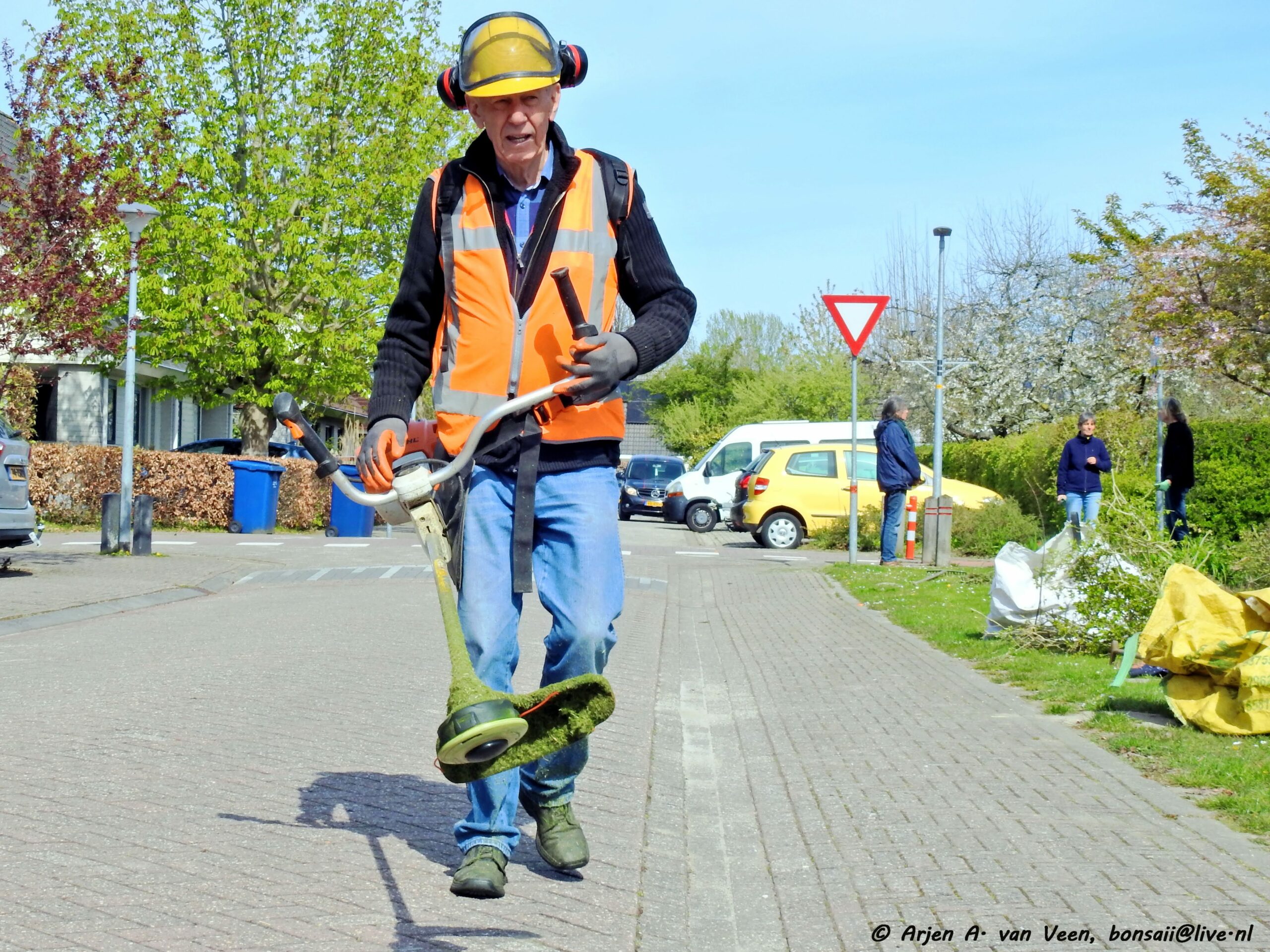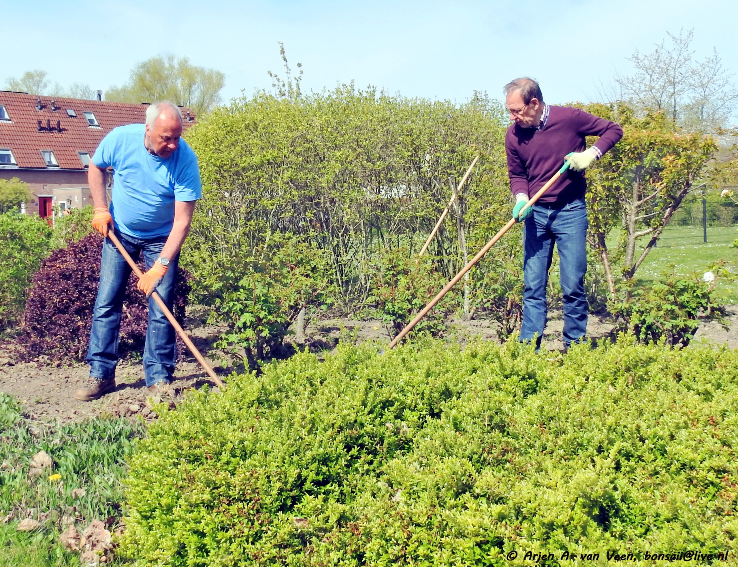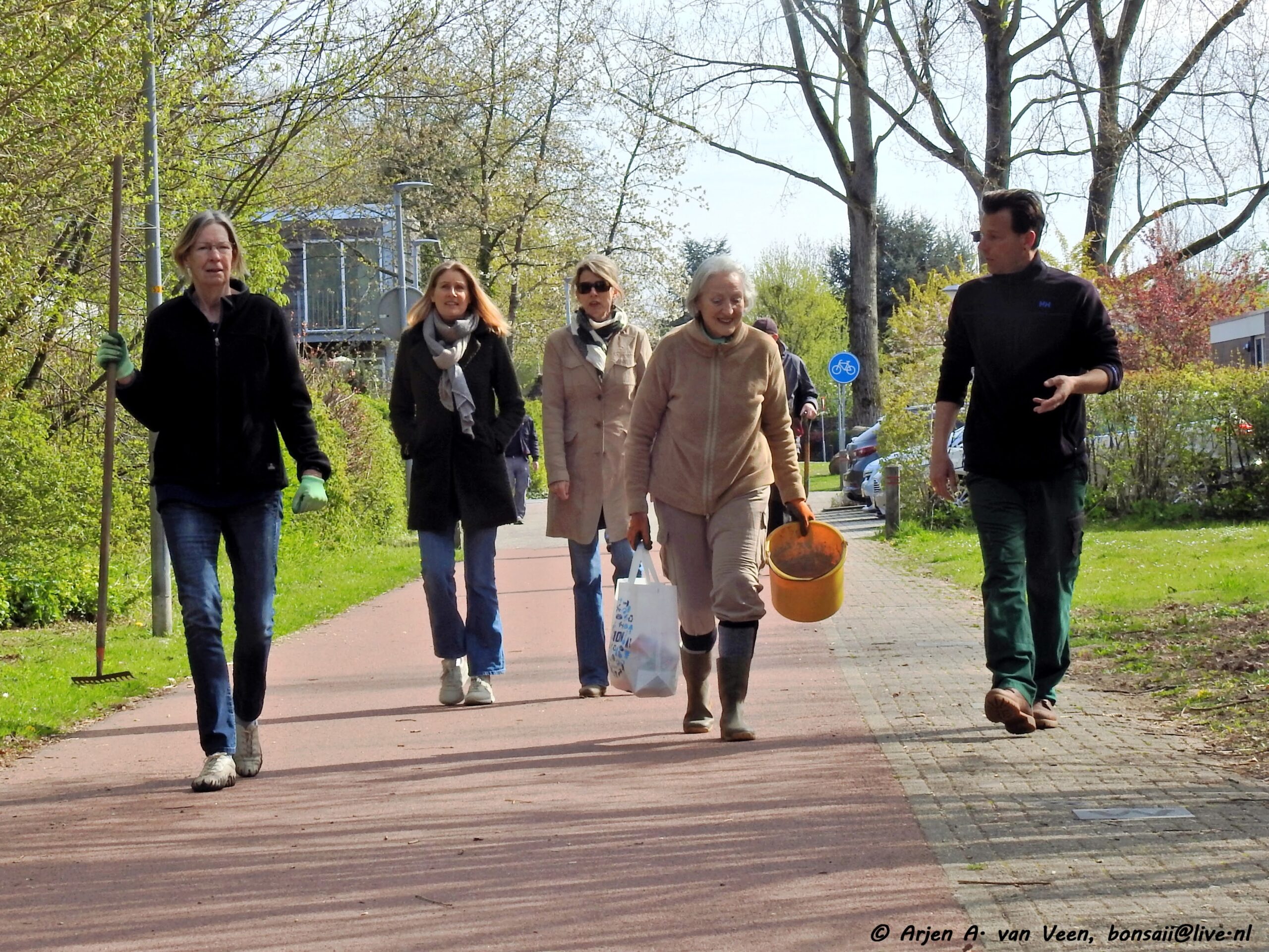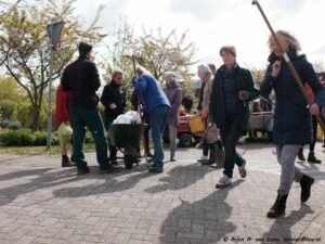 Na de opname en de groet verzamelde de werkers zich op de bekende plek om door Bram iedereen welkom te heten. Om eerst over de ellendige ziekte van Paul te hebben met daarop de vraag aan ieder of wij op dezelfde voet doorgaan met de werkzaamheden in en om de wijk, waarop eensluidend door ieder met ja beantwoord werd. Dat zal Paul zeker prettig vinden om te horen.