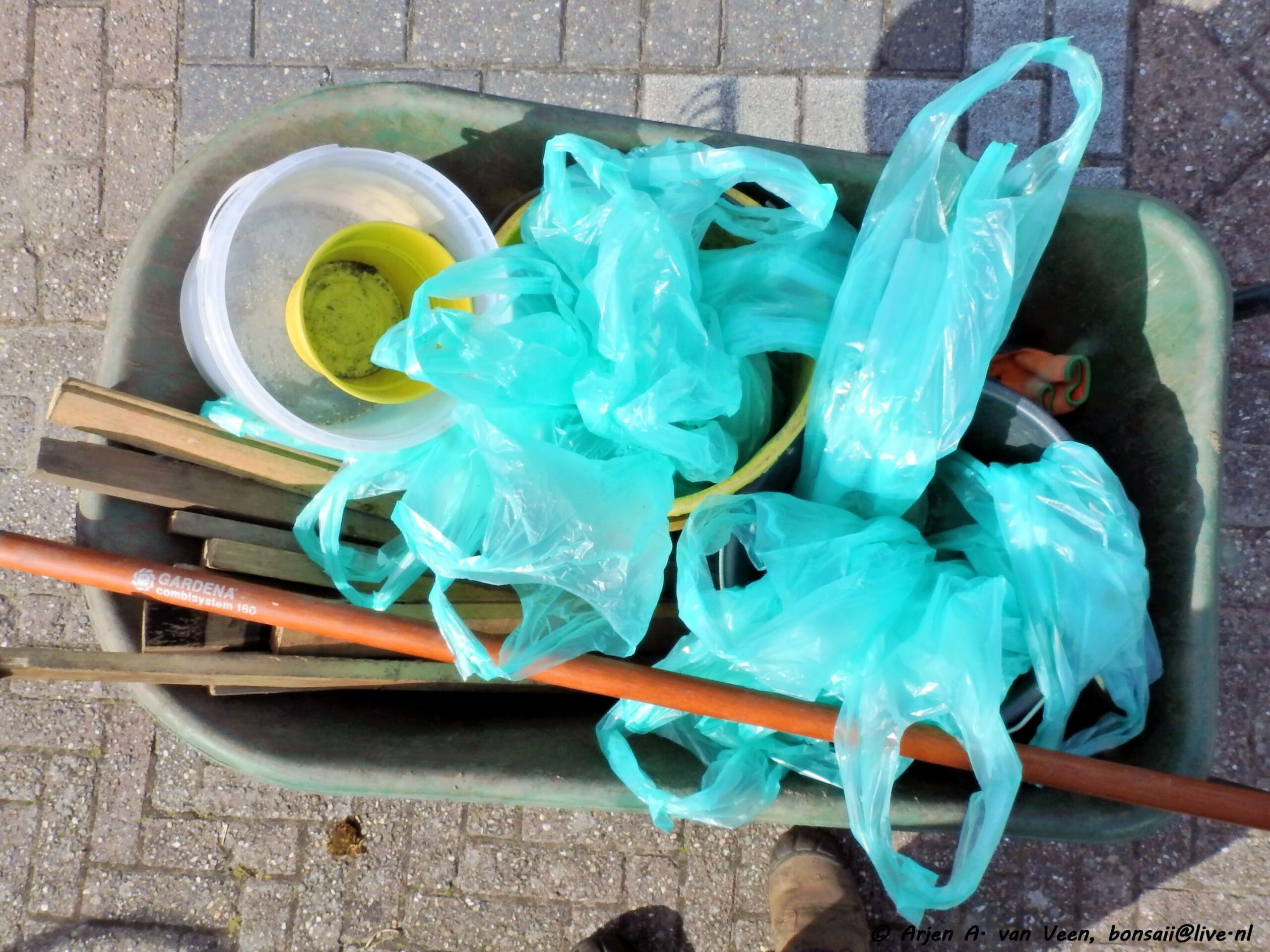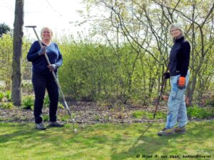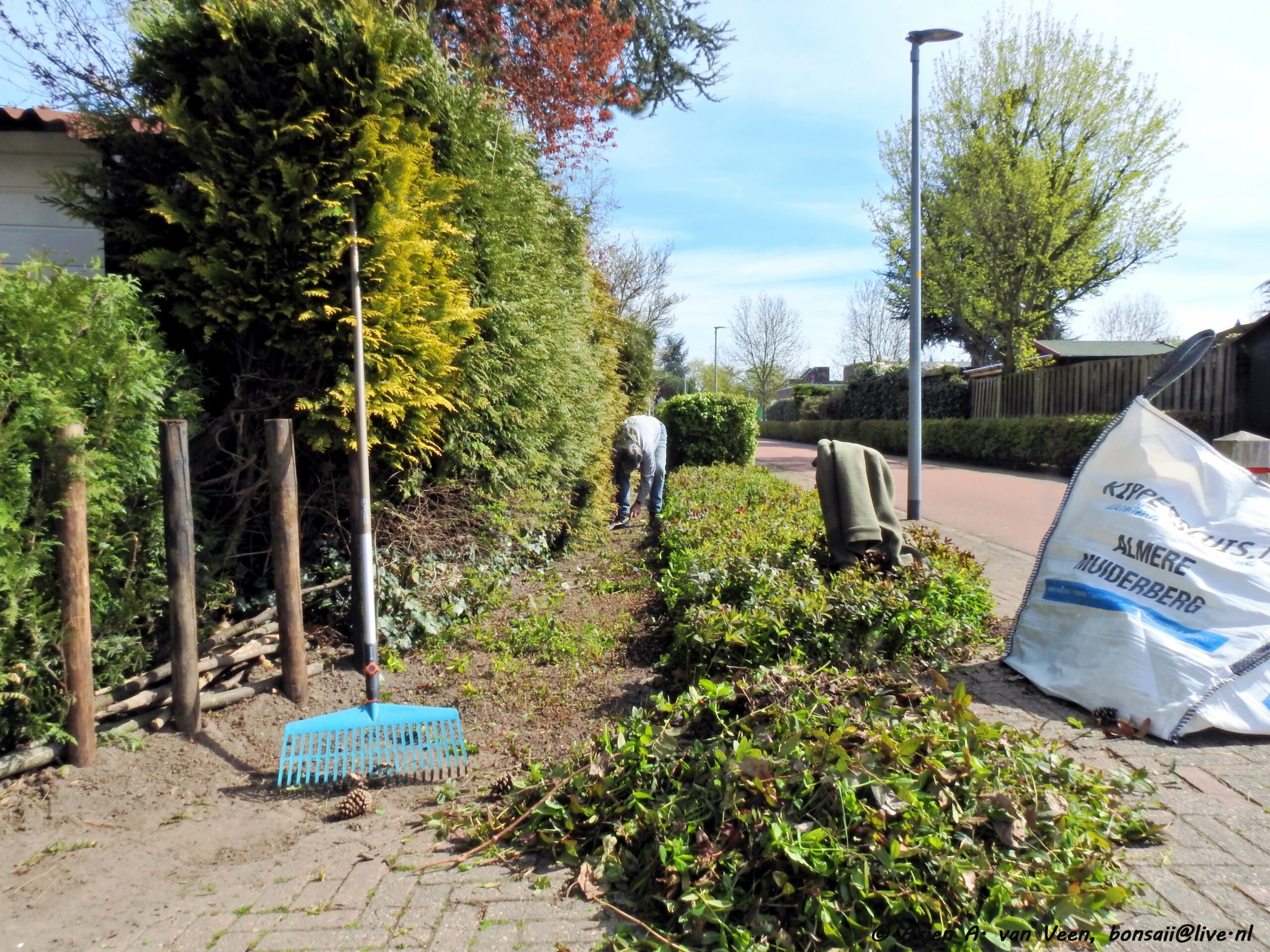 De diverse borders werden flink geschoffeld en het afval in de gele zakken gedaan om later leeg te gooien in de bladkorf.