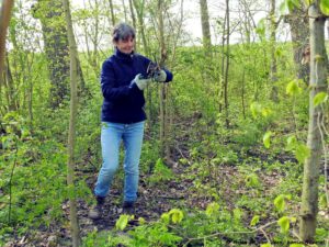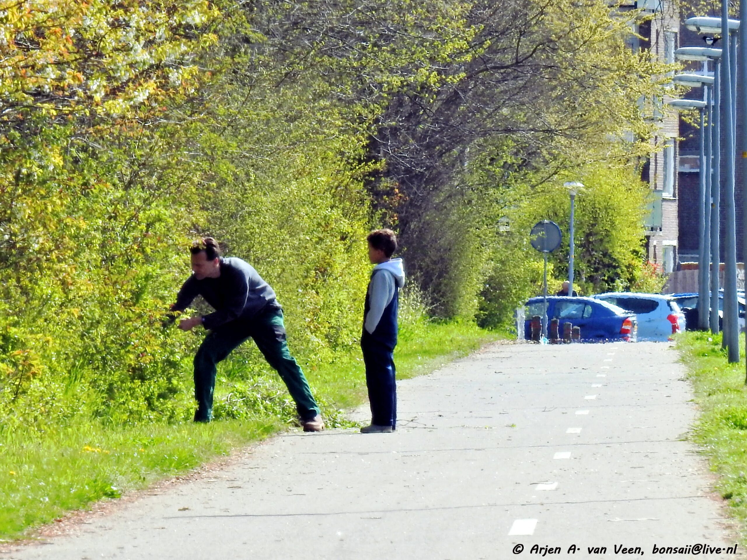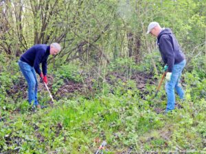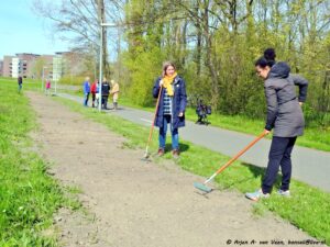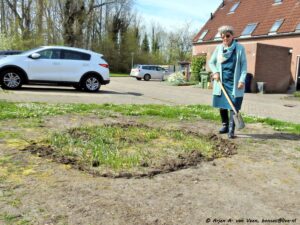 Ook zit Nicolette niet stil. Ze heeft achter haar tuin en de heg een brede strook onkruidvrij gemaakt tot de kruising.