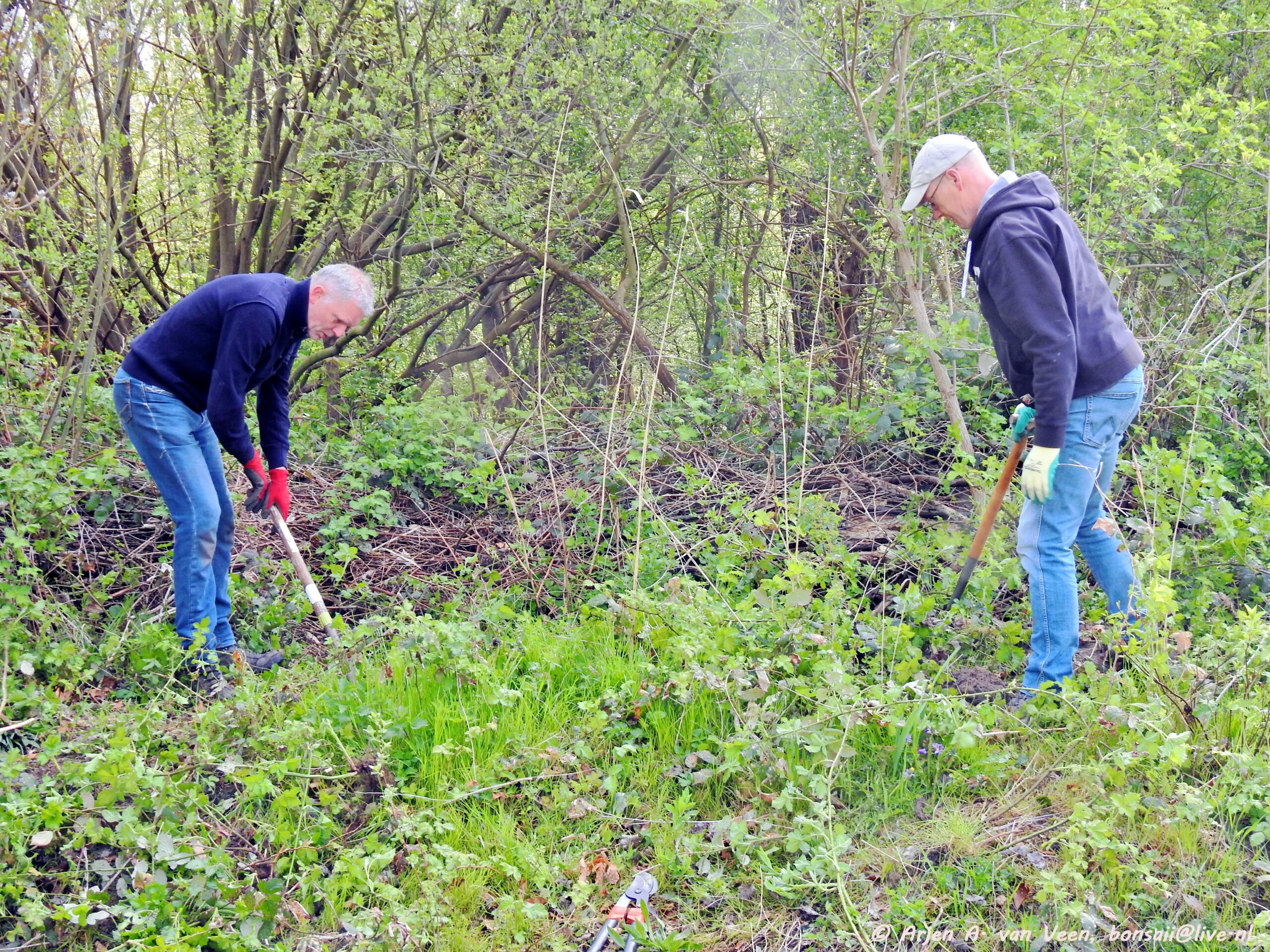 Ook het bos onderhoud werd niet vergeten. Het steken van braam, lianen wegknippen enz.