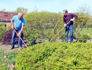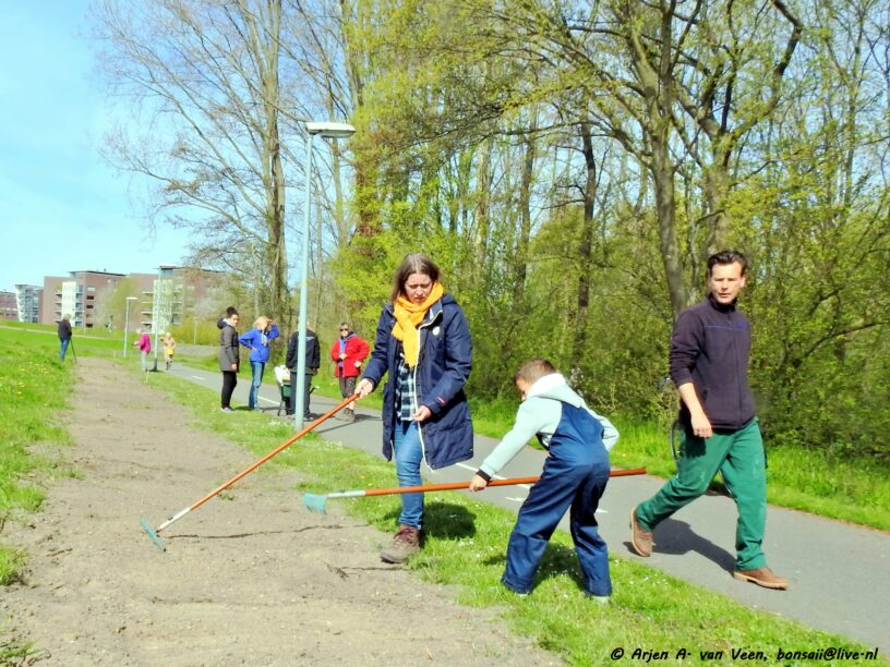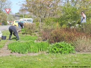 Zelfs het kleine bloemen tuintje nabij de “De Plek” werd goed onder handen genomen en het hekje ervoor gerepareerd.