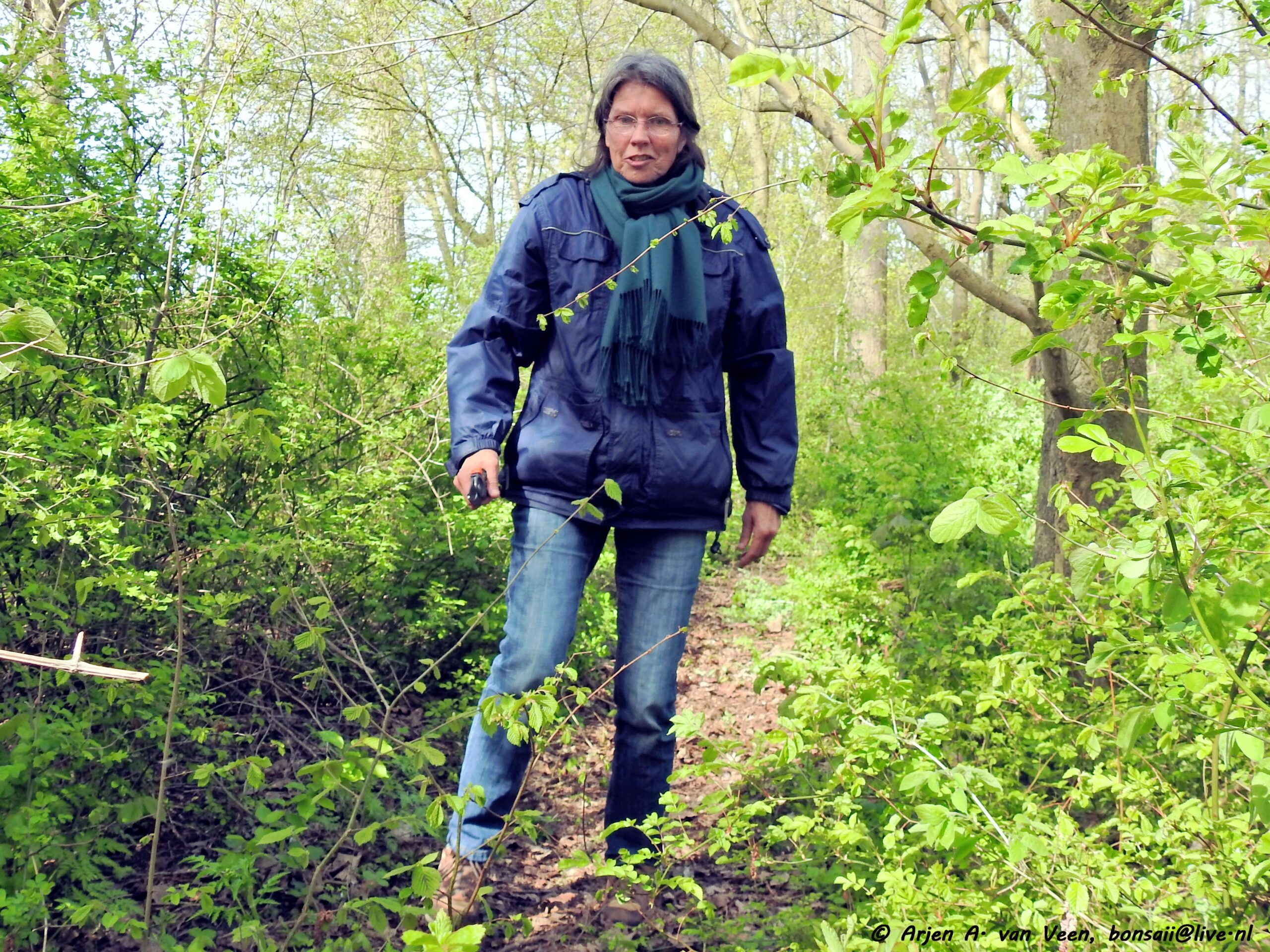 Een klein overleg over de vondst van een deel bladblazer in het bos door Regien.