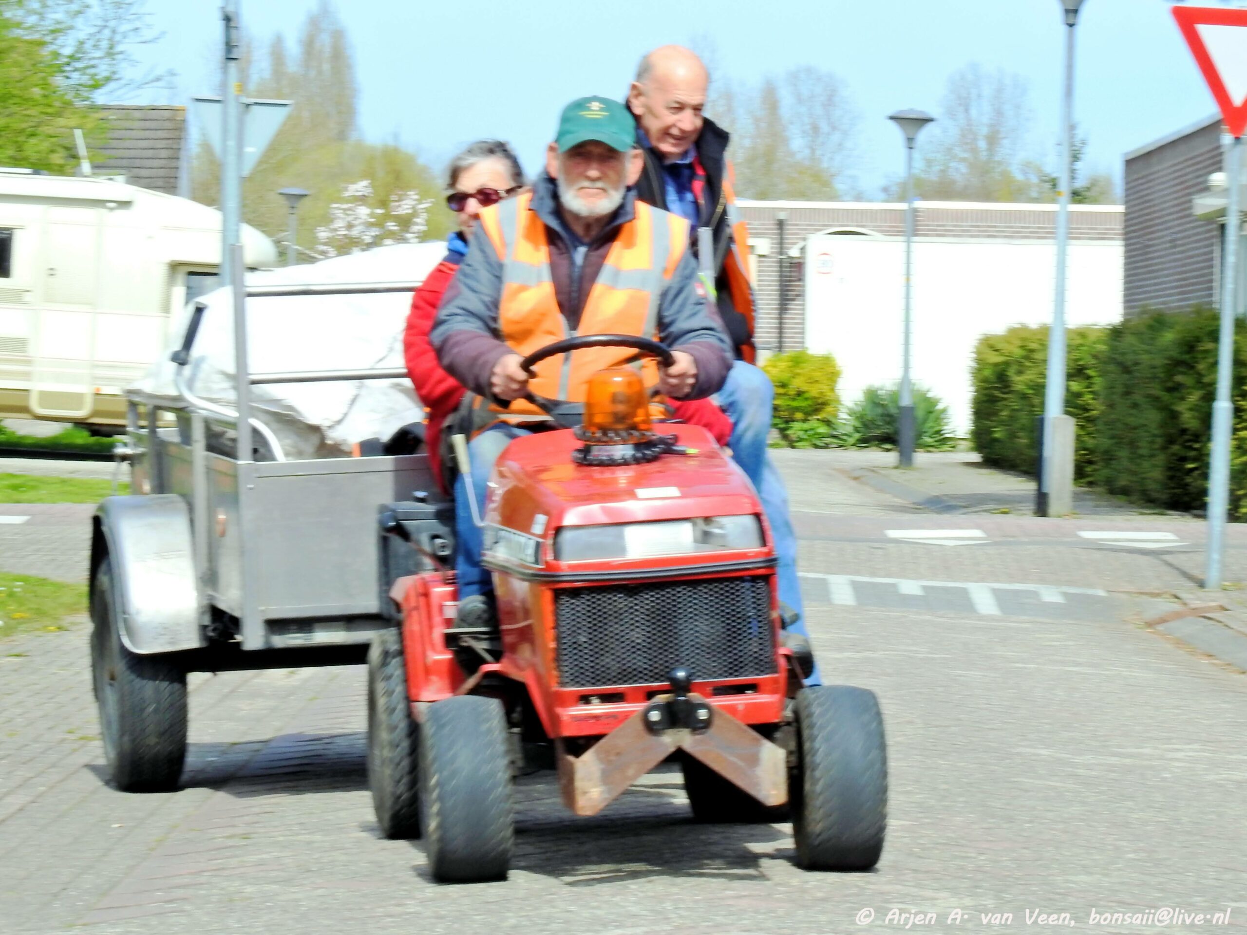 En op het laatst ging de tractor de geest geven door het gegeven dat hij vol gas op hol sloeg. Daarom de volle gele zakken maar op het grasveld gelaten voor later en voorzichtig terug gereden naar de opslagplaats om het gereedschap terug te brengen.
