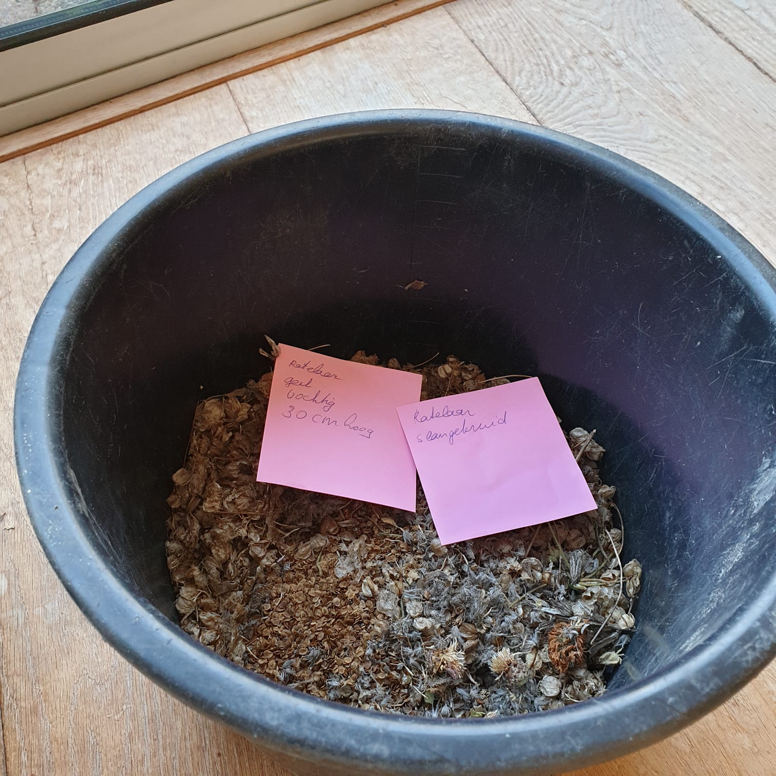 Ik mis een zaadje voor de strook zegt Levien tegen Timmie. Het was toch hier ingewaaid?